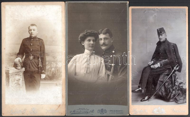 Beschreibung: cca 1890 3 db katonai kabinetfotó klf magyar fényképészek műtermeiből 11x21 cm