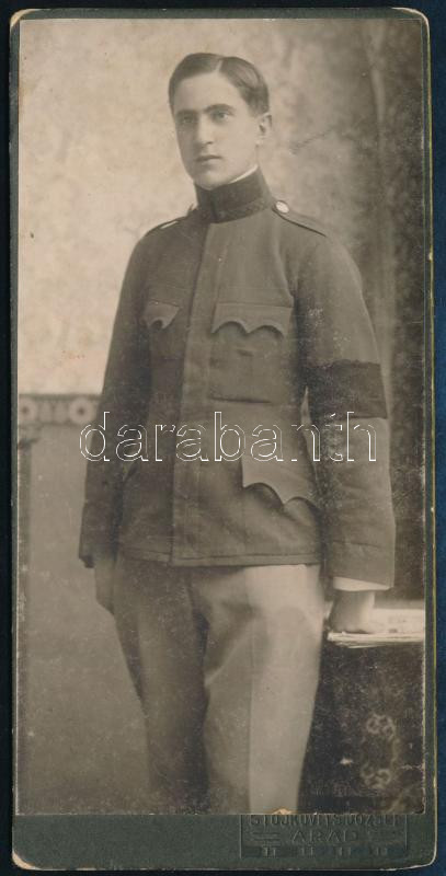 cca 1910 Katonaportré, keményhátú fotó Stojkovits József aradi műtermé... https://www.darabanth.com/de/459-Fernauktion/459.0/Kunst-Dokumente-andere-Sammelgebiete/Militaria~2000009/cca-1910-Katonaportre-kemenyhatu-foto-Stojkovits-Jozsef-aradi-mutermebol-16x8-cm~II3077092