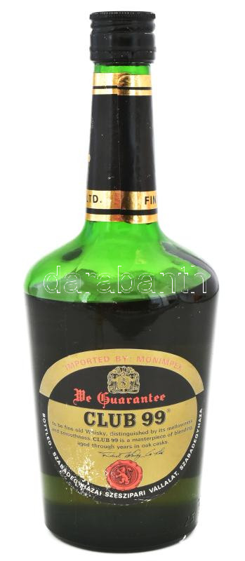 Club 99 skót whiskey, 0,7l, bontatlan https://www.darabanth.com/de/459-Fernauktion/459.0/Kunst-Dokumente-andere-Sammelgebiete/Vintage-Weine-Getranke~1000017/Club-99-skot-whiskey-0-7l-bontatlan~II3076510