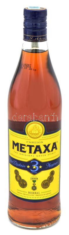 Metaxa 3*, 0,7l, 30%, bontatlan https://www.darabanth.com/de/459-Fernauktion/459.0/Kunst-Dokumente-andere-Sammelgebiete/Vintage-Weine-Getranke~1000017/Metaxa-3-0-7l-30-bontatlan~II3076448