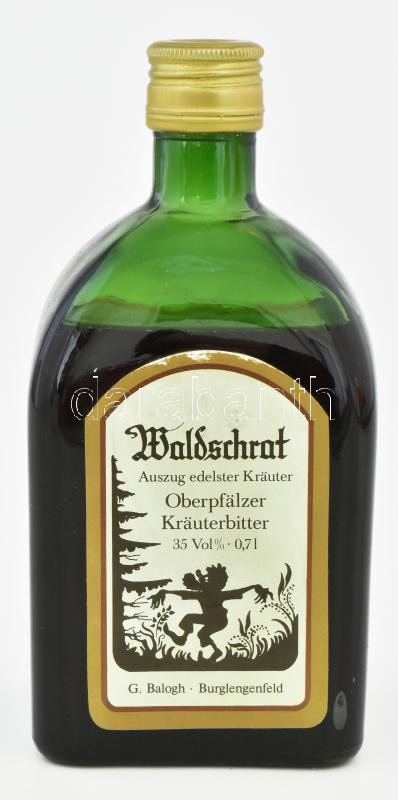 Waldschrat keserűlikőr. 0,7l, 35%, bontatlan https://www.darabanth.com/de/459-Fernauktion/459.0/Kunst-Dokumente-andere-Sammelgebiete/Vintage-Weine-Getranke~1000017/Waldschrat-keserulikor-0-7l-35-bontatlan~II3076470