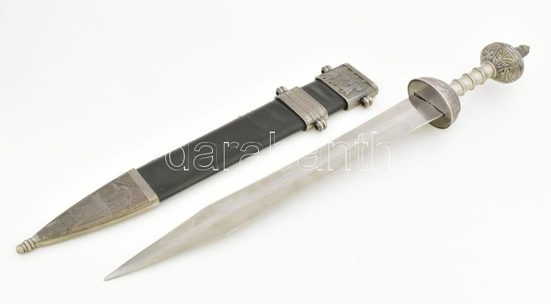 Római gladiusz kard replika, fém részein római stílusú díszítményekkel... https://www.darabanth.com/de/459-Fernauktion/459.0/Kunst-Dokumente-andere-Sammelgebiete/Waffen-Messer~2000008/Romai-gladiusz-kard-replika-fem-reszein-romai-stilusu-diszitmenyekkel-tokjaban-jo-allapotban-~II3072587