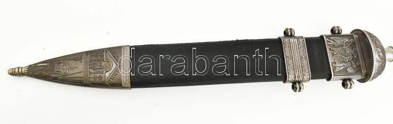 Beschreibung: Római gladiusz kard replika, fém részein római stílusú díszítményekkel, tokjában, jó állapotban, h: 80 cm