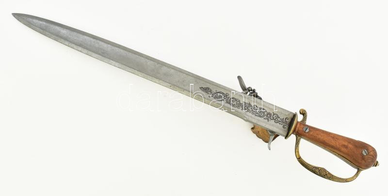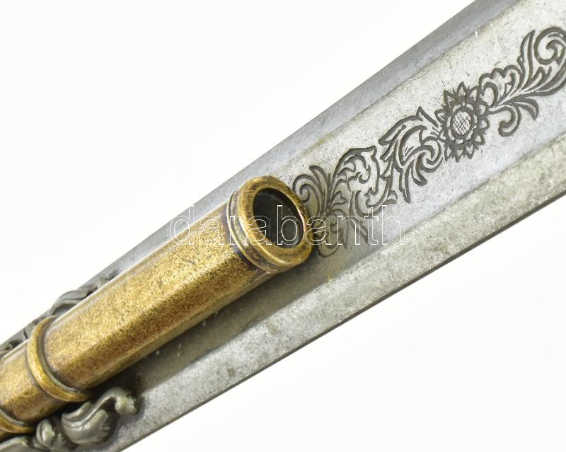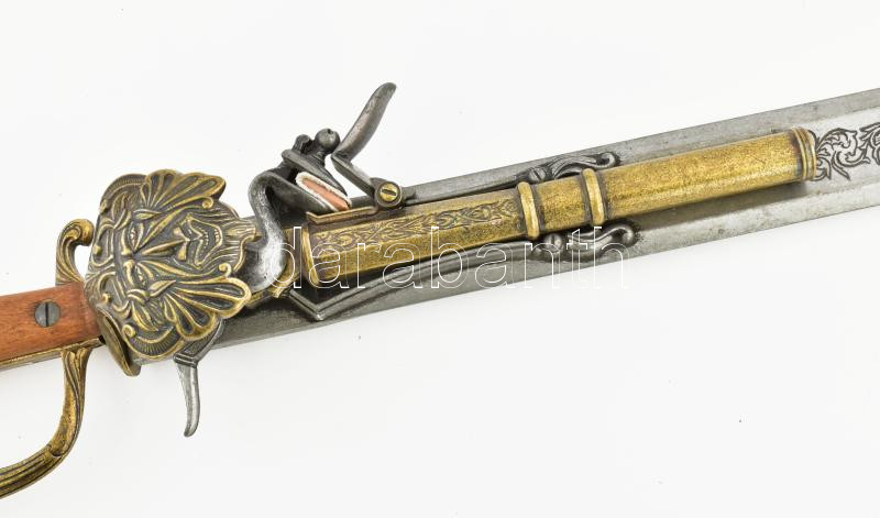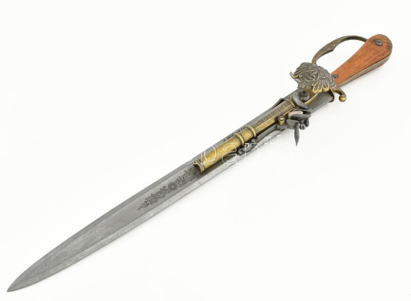 Beschreibung: XVIII. századi francia tőr-pisztoly replika. Kovás pisztollyal kombinált tőr, h: 64 cm