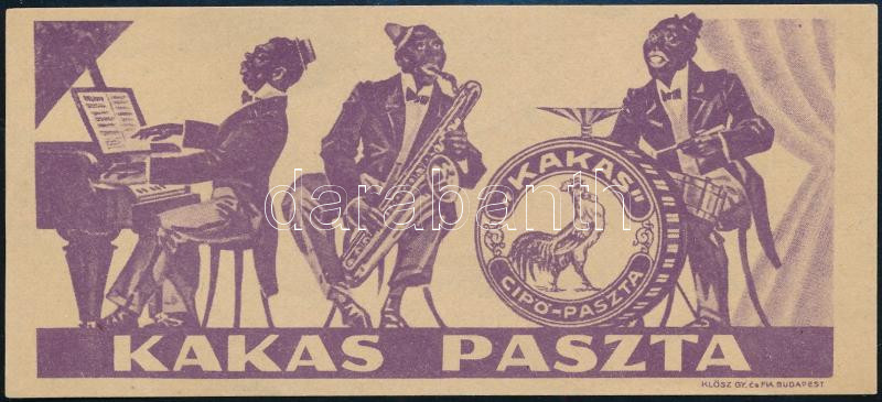 cca 1920-1930 Kakas paszta számolócédula, Bp., Klösz-ny., https://www.darabanth.com/de/459-Fernauktion/459.0/Kunst-Dokumente-andere-Sammelgebiete/Werbungen~2000001/cca-1920-1930-Kakas-paszta-szamolocedula-Bp-Klosz-ny-~II3071618