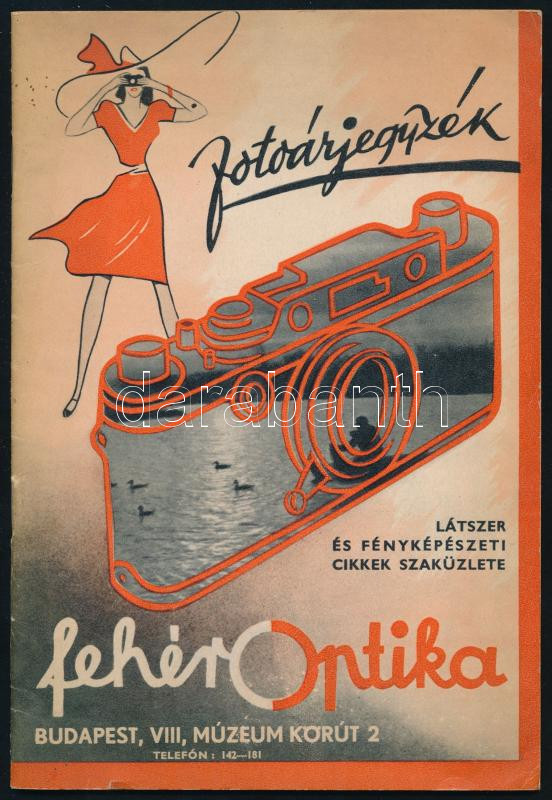 cca 1930-1940 Fehér Optika fotóárjegyzék. Bp., Tolnai-ny., 64 p. Feket... https://www.darabanth.com/de/459-Fernauktion/459.0/Kunst-Dokumente-andere-Sammelgebiete/Werbungen~2000001/cca-1930-1940-Feher-Optika-fotoarjegyzek-Bp-Tolnai-ny-64-p-Fekete-feher-kepekkel~II3071905