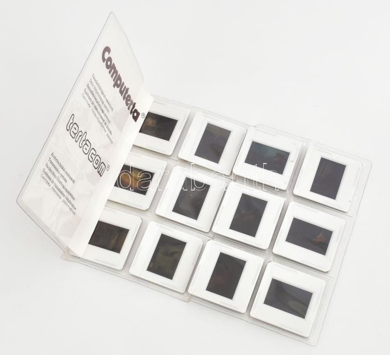 Beschreibung: cca 1980 Tetracom távadatfeldolgozó rendszerek reklámos dia filmek, benne budapesti látképekkel is 12 db diafilm tartóval