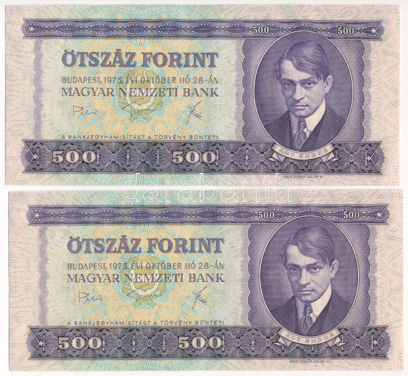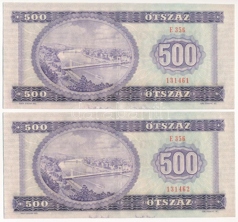 Beschreibung: 1975. 500Ft (2x) sorszámkövetők "E 356 131461 - E 356 131462" nyomdai festékfoltokkal T:XF