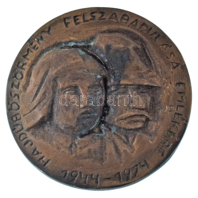1974. "Hajdúböszörmény felszabadulása emlékére 1944-1974" öntött bronz plakett dísztokban (87mm) T:XF patina