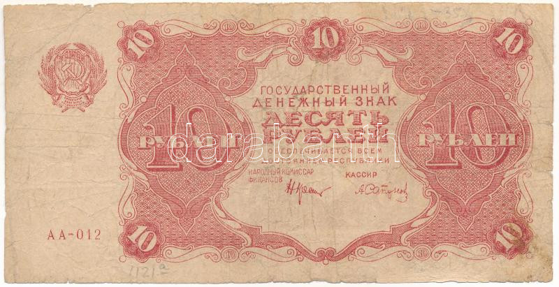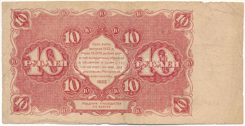 Szovjetunió / Orosz Szocialista Szövetségi Szovjet Köztársaság 1922. 10R T:VG kis beszakadások Soviet Union / Russian Socialist Federated Soviet Republic 1922. 10 Rubles C:VG small tears Krause P#130