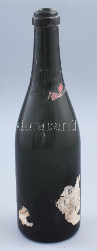 Littke Casino pezsgős üveg - Littke L. pezsgőborgyár, Pécs - nagyon hiányos címkével és feliratmaradványokkal, piros nyakcímke maradványokkal, "...e L." / ".XTRA" / "Frigyes főherceg..." feliratokkal, valamint Habsburg Frigyes főherceg címerével, m: 30,5 cm