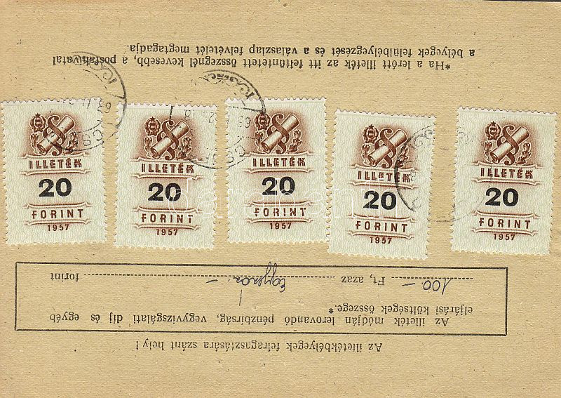 1968 5 db 20Ft okmánybélyeg hiányos alapnyomattal hivatalos válaszleve... https://www.darabanth.com/de/46-Fernauktion/46.0/Andere-Sammelgebiete/~172/1968-5-db-20Ft-okmanybelyeg-hianyos-alapnyomattal-hivatalos-valaszlevelezolapon~II92972
