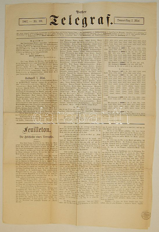1867 Telegraf című újság magyar illeték-szignettával https://www.darabanth.com/de/46-Fernauktion/46.0/Andere-Sammelgebiete/~173/1867-Telegraf-cimu-ujsag-magyar-illetek-szignettaval~II93208