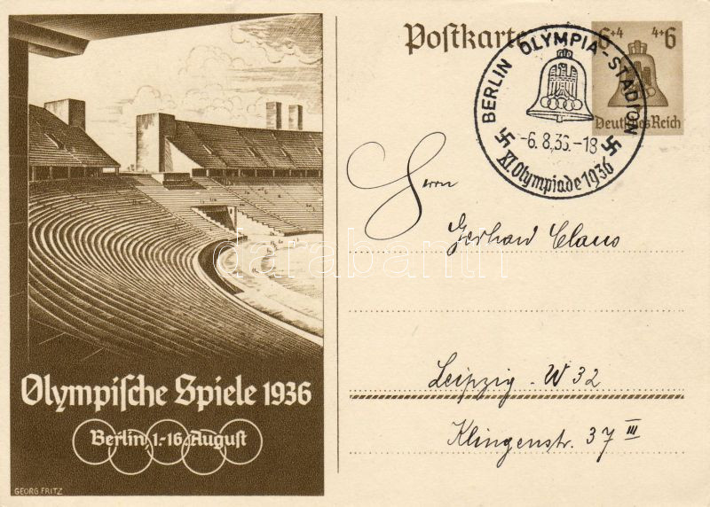 Beschreibung: 1936 Berlini olimpia díjjegyes levelezőlap alkalmi bélyegzéssel