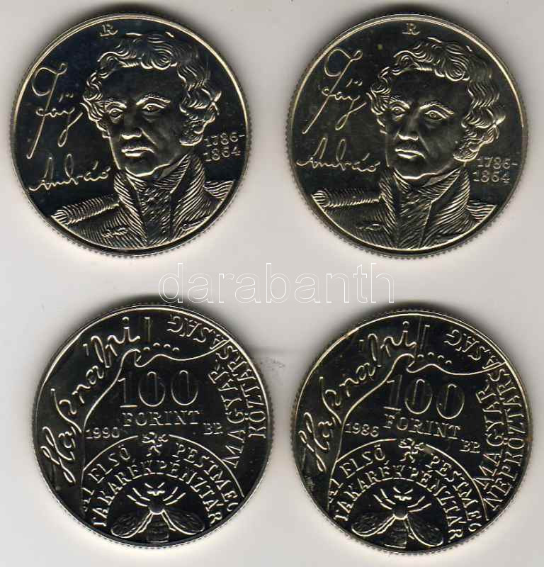 1986. 100Ft "Fáy A." (4x) T:BU https://www.darabanth.com/de/46-Fernauktion/46.0/Numismatik/~184/1986-100Ft-Fay-A-4x-TBU~II92977