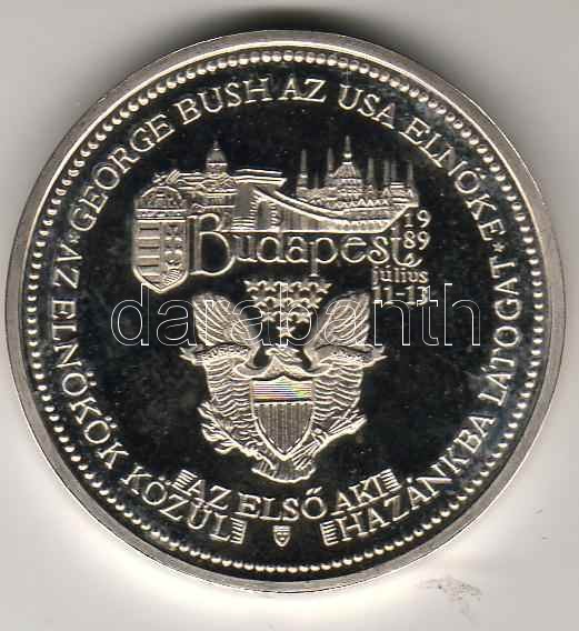 1989. "Bush látogatása" fehérfém érme T:PP https://www.darabanth.com/de/46-Fernauktion/46.0/Numismatik/~185/1989-Bush-latogatasa-feherfem-erme-TPP~II93127