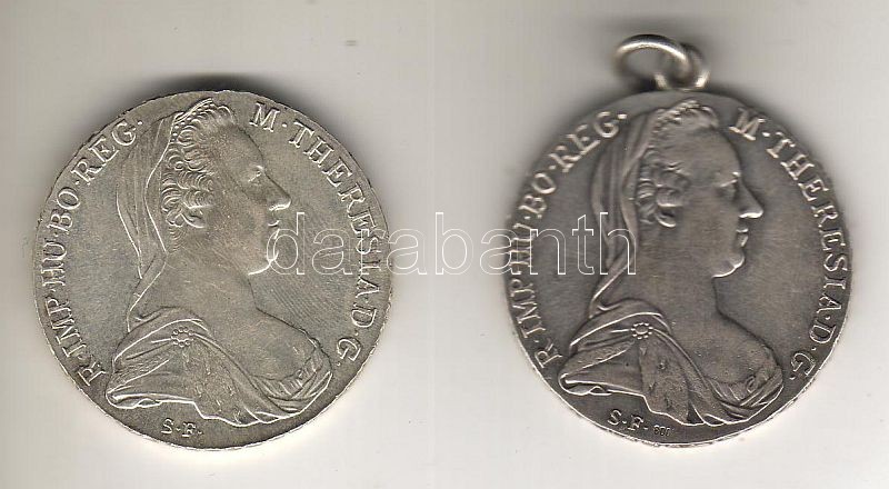 Ausztria 1780SF "Maria Theresia" Thaler (2x) újveret T:1,2 (füllel) https://www.darabanth.com/de/46-Fernauktion/46.0/Numismatik/~188/Ausztria-1780SF-Maria-Theresia-Thaler-2x-ujveret-T1-2-fullel~II93133