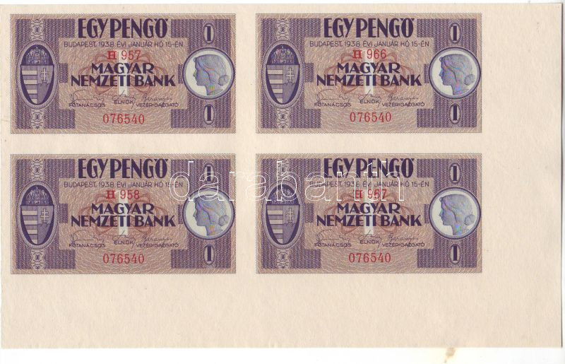 1938. 1P jobb alsó ívszél fekvő 4-es tömbben T:I https://www.darabanth.com/de/46-Fernauktion/46.0/Numismatik/~191/1938-1P-jobb-also-ivszel-fekvo-4-es-tombben-TI~II93222