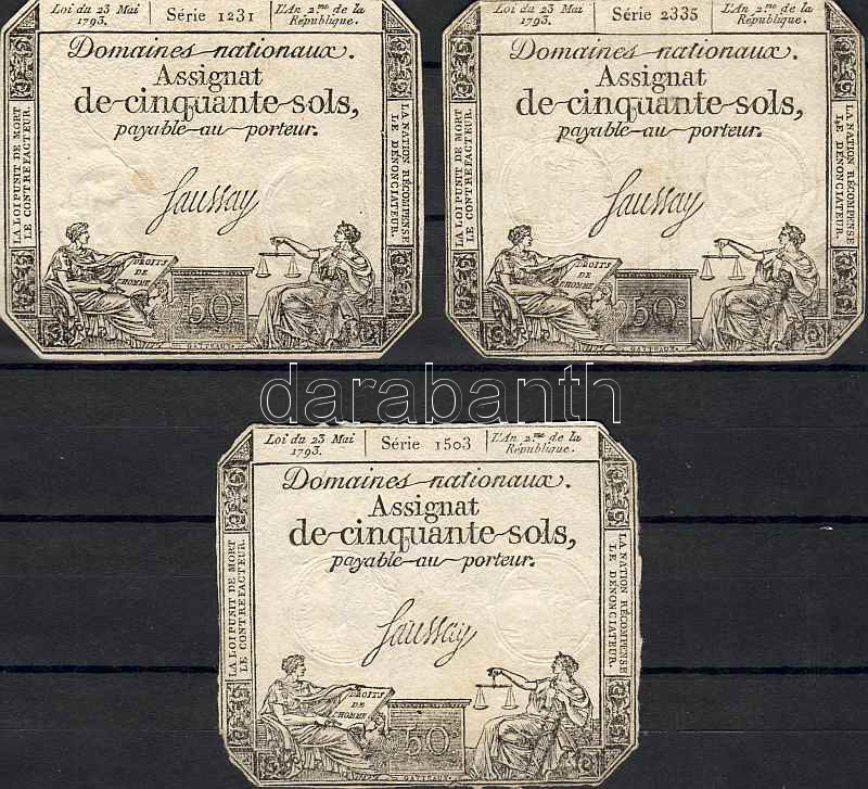 Beschreibung: Franciaország 1793. 50S (3x) "Assignat" T:II Csak egyszer hajtva!