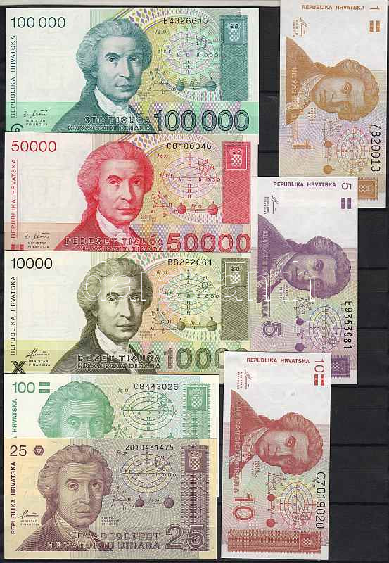 Horvátország 1992. 8 db klf bankjegy T:I https://www.darabanth.com/de/46-Fernauktion/46.0/Numismatik/~191/Horvatorszag-1992-8-db-klf-bankjegy-TI~II93154