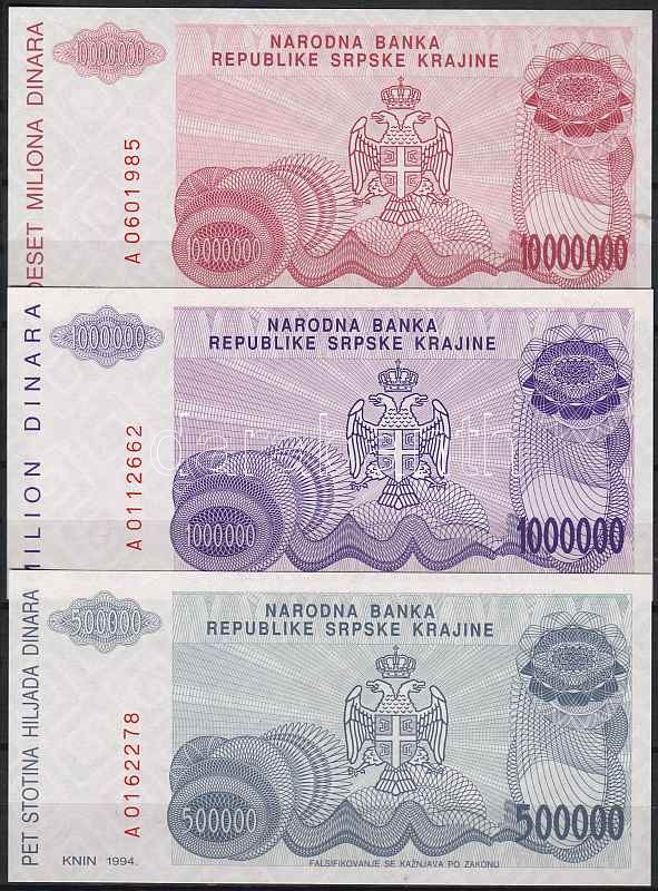 Horvátország/Krajina Szerb Köztársaság 1994. 5 db, komplett szett T:I https://www.darabanth.com/de/46-Fernauktion/46.0/Numismatik/~191/HorvatorszagKrajina-Szerb-Koztarsasag-1994-5-db-komplett-szett-TI~II93151