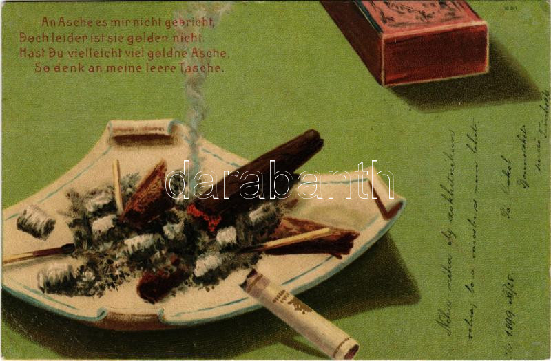 1899 'An Asche es mir nicht gebricht...' / cigarette and cigar art postcard. litho (EK)
