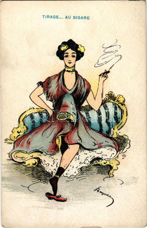 Tirage...au sigare / lady smoking cigarette art postcard. artist signed