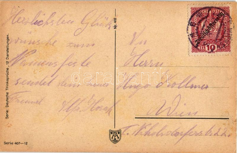 Men drinking beer art postcard. B.K.W.I. 568-2. artist signed (EB)