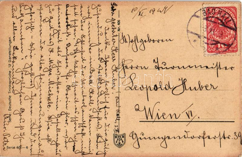 'Des Morgens, Mittags, Abends..." Deutsche Trinksprüche Serie 401-6. / beer mug (EK)