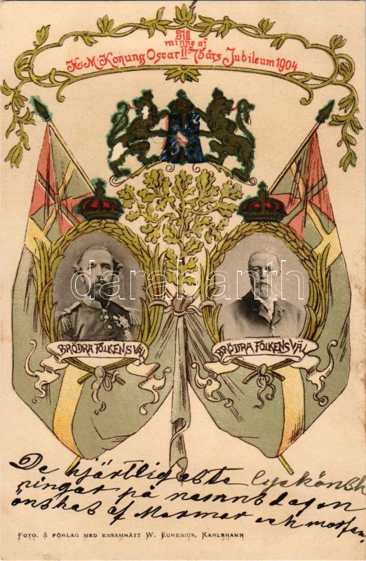 Till minne af K. M. Konung Oscar II's 75 ars Jubileum 1904. Brödrafolkens väl / 75th birthday of Oscar II, King of Sweden. Art Nouveau, floral, litho (felületi sérülés / surface damage)
