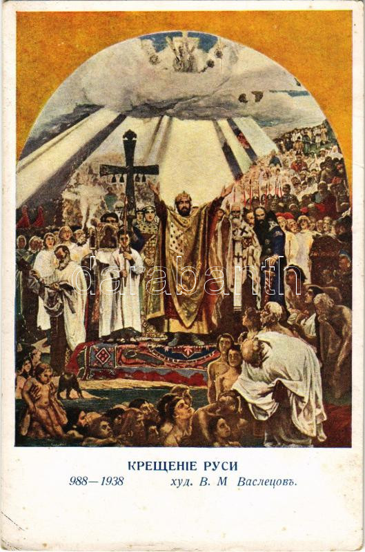 "The Baptism of Russia" Depicts Vladimir Svyatoslavovich, the Grand Duke of Kyiv, when Orthodox Christianity was adopted in the Kievan Rus s: Viktor Vasnetsov (fa)