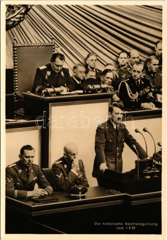 1939 Die historische Reichstagsitzung vom 1. 9. 39. - Adolf Hitler. Photo Hoffmann + So. Stpl (EK)