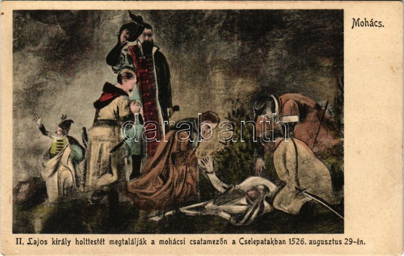 Mohács, II. Lajos király holttestét megtalálják a mohácsi csatamezőn a Csele-patakban 1526. augsuztus 29-én. Pollák Róbert kiadása (fl)