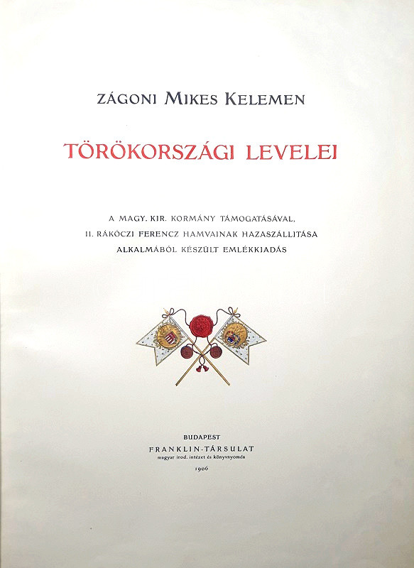 Mikes Kelemen: Zágoni Mikes Kelemen Törökországi levelei. A magyar királyi kormány támogatásával, II. Rákóczi Ferencz hamvainak hazaszállítása alkalmából készült emlékkiadás. Edvi Illés Aladár illusztrációival.