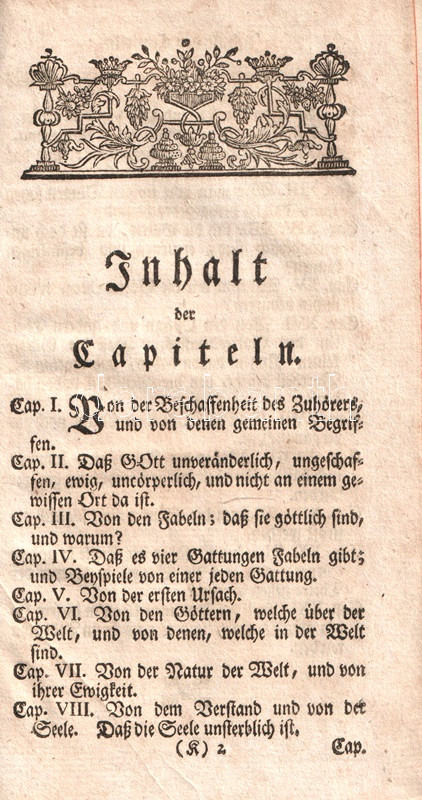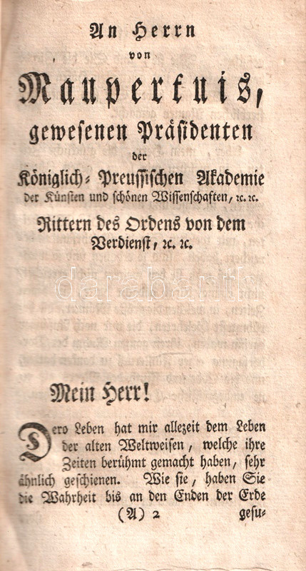 Frankfurt und Leipzig, 1761. Bey Heinrich Ludwig Brönner. 146 + [2] p. Első német kiadás.