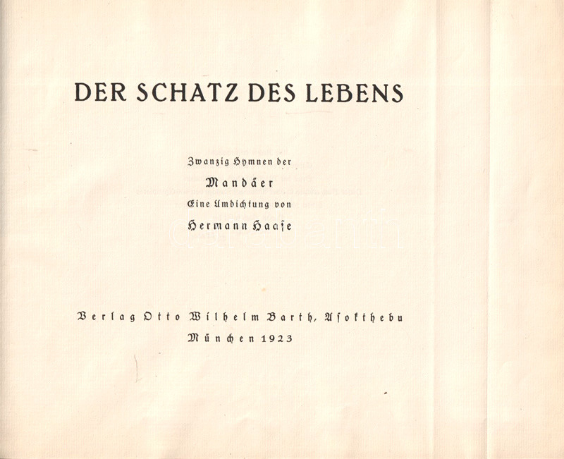 Haase, Hermann: Der Schatz des Lebens. Zwanzig Hymnen der Mandäer. Eine Umdichtung von Hermann Haase. (Számozott, aláírt, dedikált.)