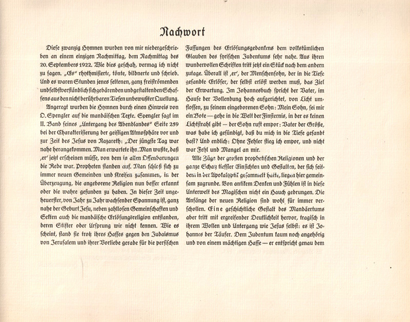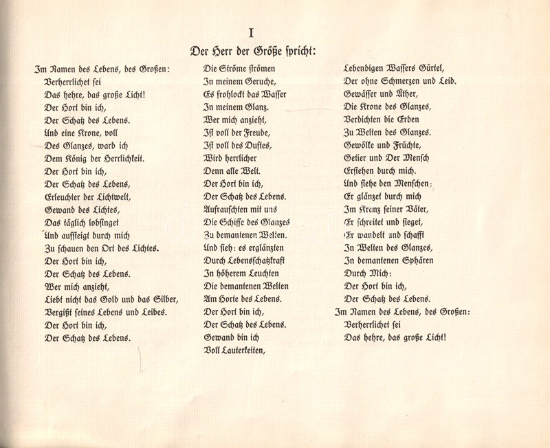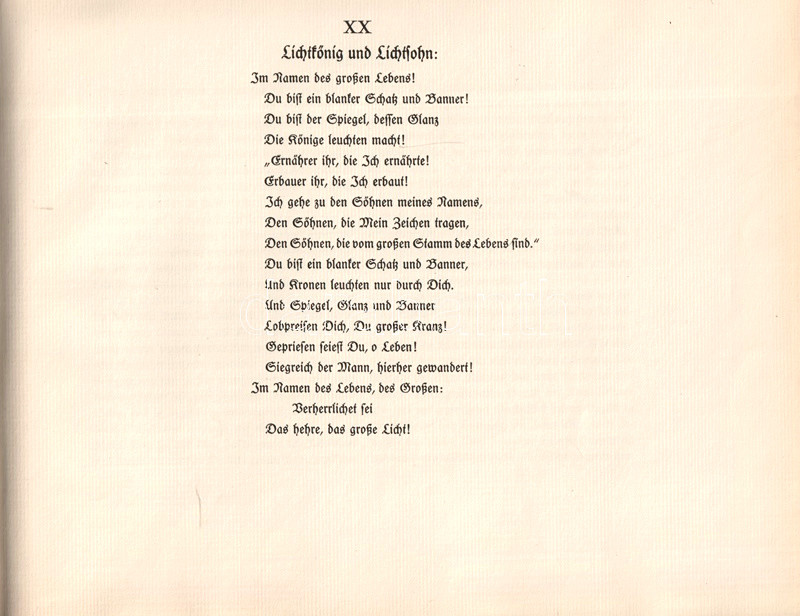 München, 1923. Verlag Otto Wilhelm Barth (Druck der Mandruck Ag.) [32] p. Haránt alakú kötet. Egyetlen kiadás.