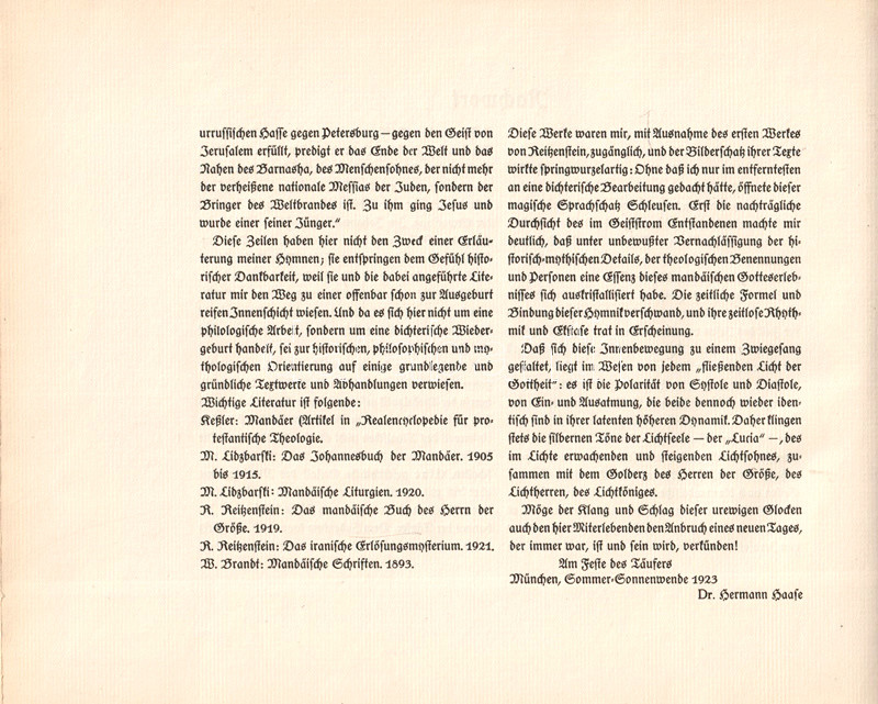 Összesen 600 példányban készült aláírt, dedikált, bibliofil kötetünk dr. Hermann Haase orientalista himnuszi hangvételű verseit tartalmazza, melyeket az Irakban élő, Keresztelő Szent Jánost tisztelő gnosztikus vallás, a mandeizmus ihletett.