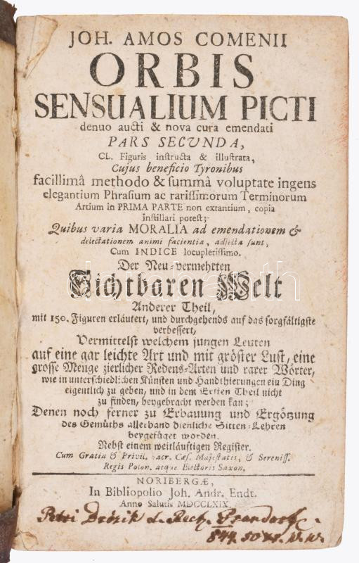 Joh[annes] Amos Comenius: Orbis Sensualium Picti denuo aucti & nova cura emendati Pars Secunda, ... Der Neu-vermehrten Sichtbaren Welt Anderer Theil, ...