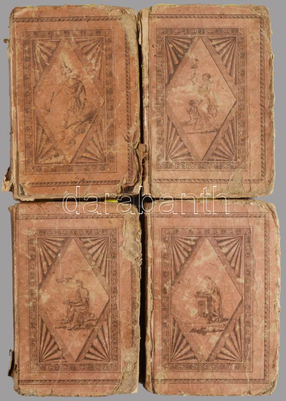 Kiadói allegorikus alakokkal díszített, rézmetszetes kartonkötésben, kopott borítókkal, I. kötet: sérült, részben hiányos gerinccel, sérült elülső kötéstáblával, a címlapon kis hiánnyal, sérült kötéssel (72-73 között), 6 kijáró lappal (75-86), foltos lapokkal, II. kötet: sérült gerinccel, sérült kötéstáblákkal, egy sérült lappal (183/184), foltos lapokkal, III. kötet: sérült gerinccel és sérült kötéstáblákkal, foltos lapokkal, IV. kötet: sérült gerinccel, foltos lapokkal, possessori bejegyzésekkel.