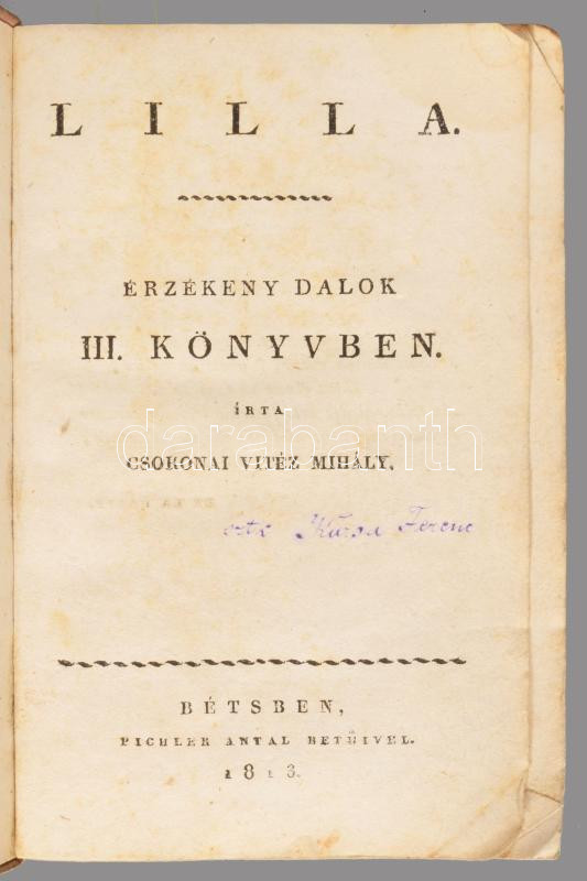 III. köt.: Lilla. Érzékeny dalok III. könyvben. Hozzákötve: Ódák. Két könyvben.