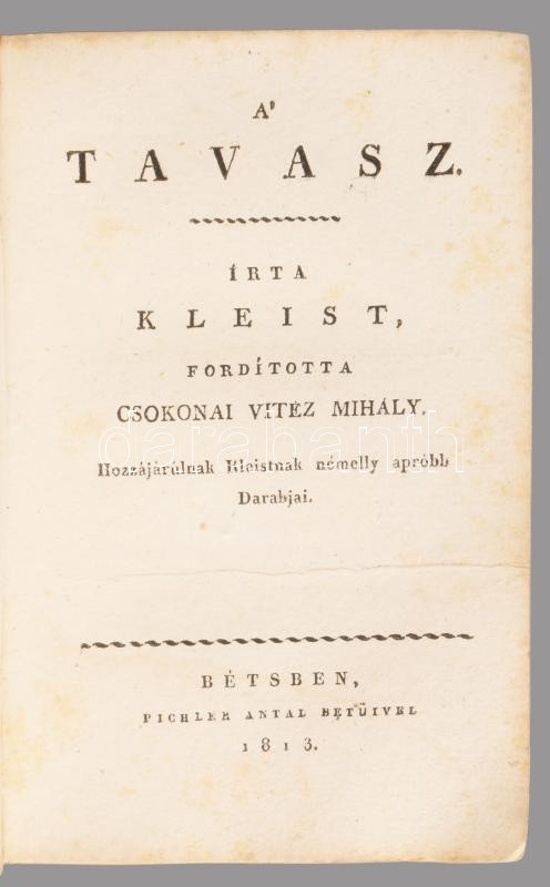 II. köt.: Anakreoni Dalok. Hozzákötve: A' Tavasz. Írta: Kleist. Fordította - -. Hozzájárulnak Kleistnak némelly apróbb Darabjai.