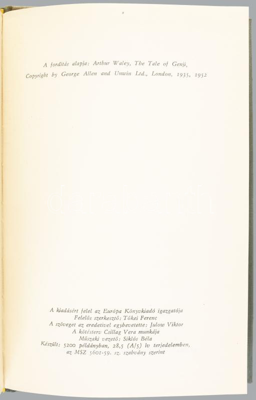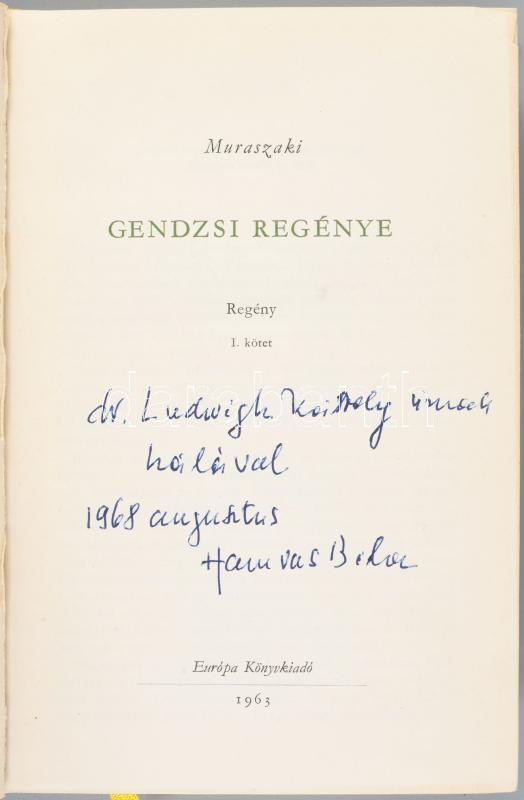 Muraszaki [Sikibu]: Gendzsi regénye. I-III. köt. Ford.: Hamvas Béla. A fordító, Hamvas Béla (1897-1968) író, filozófus, esztéta által DEDIKÁLT, dátumozott (1968 augusztus) példány.