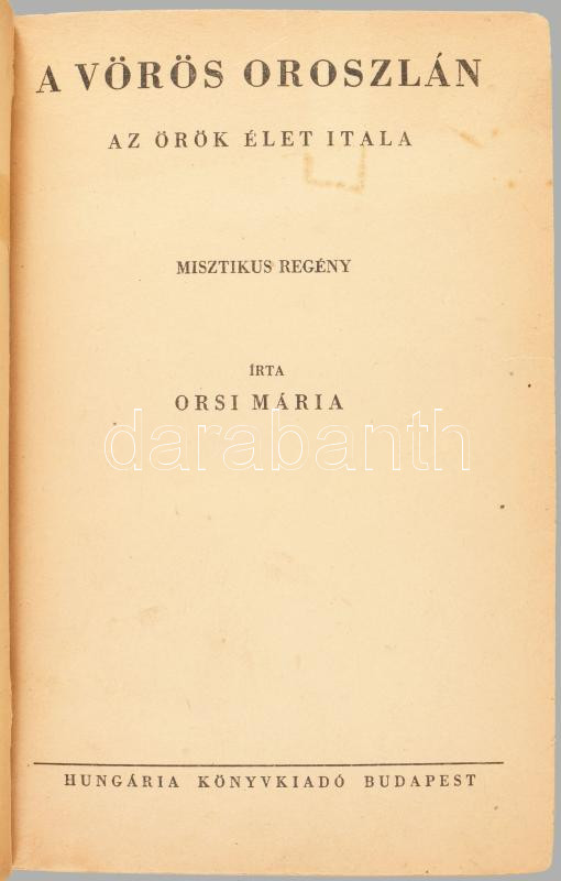 [Szepes Mária] Orsi Mária: A vörös oroszlán. Az örök élet itala. Bp.,[1946.], Hungária-ny., 411 p. 1. kiadás. Átkötött félvászon-kötés, az elülső szennylap javított. Ritka!