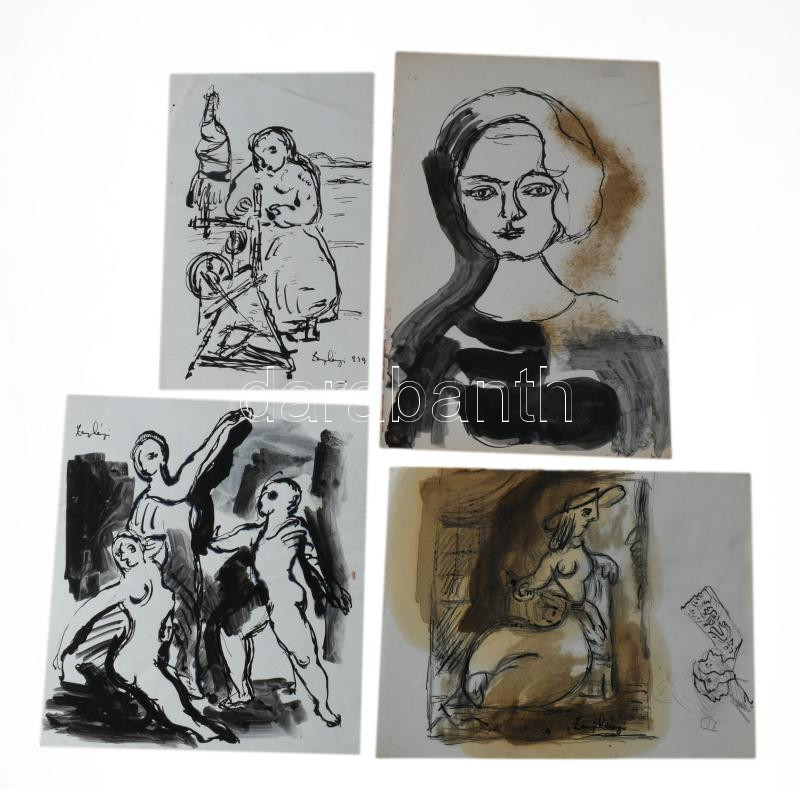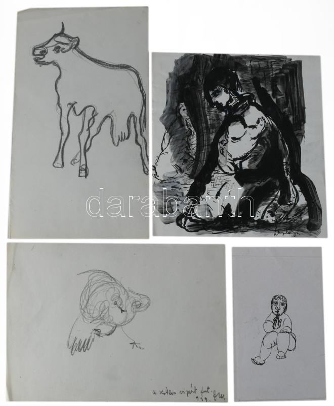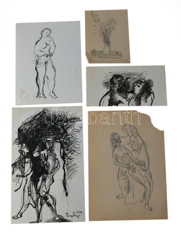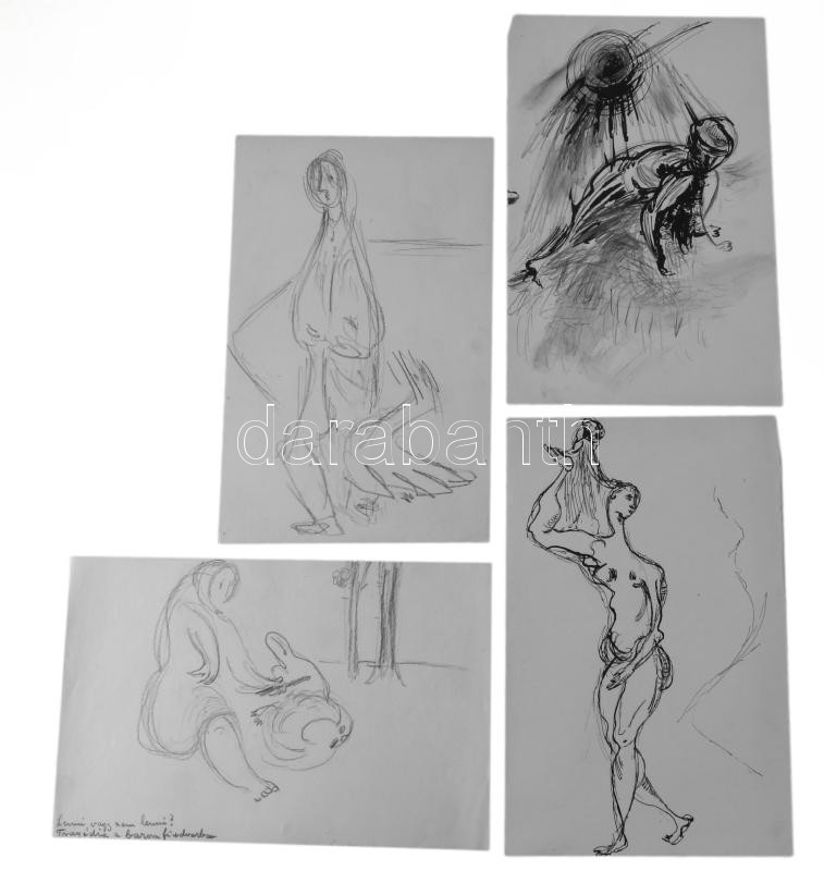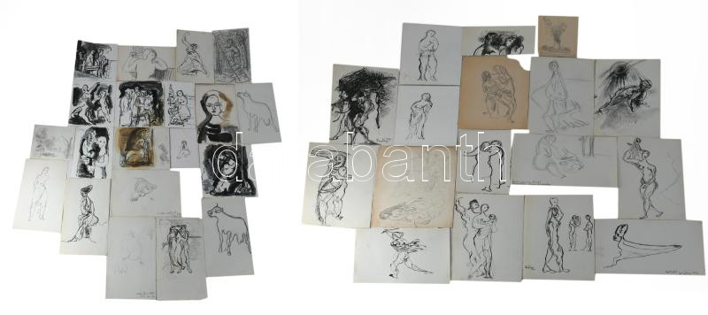 Zemplényi Magda (1899-1965): 37 db tanulmányrajz, 1939 körül. Ceruza, tus, papír. Részben jelzett. Klf. kisebb méretekben.