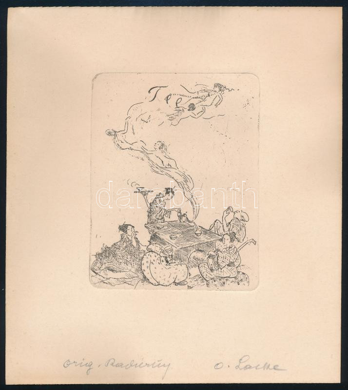 Oskar Laske (1874-1951): Tea (Tee). Rézkarc, papír, jelzett, 10x7,5 cm / etching on paper, signed