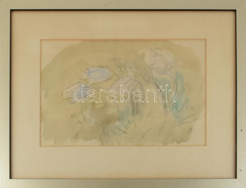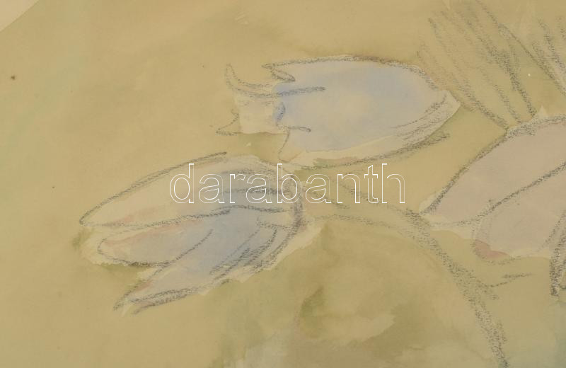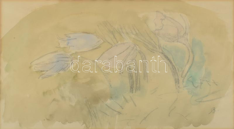 Bernáth Aurél (1895-1982): Tulipánok, 1930 körül. Tus, papír, jelzett. Hátoldalán londoni képkeretező címkéjével és angol ny. felirattal .Üvegezett fakeretben, 24×36,5 cm