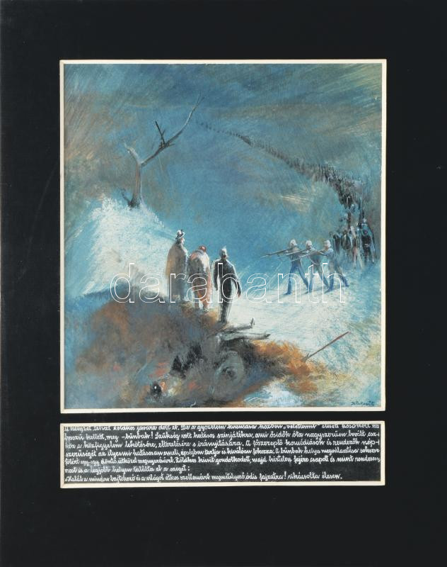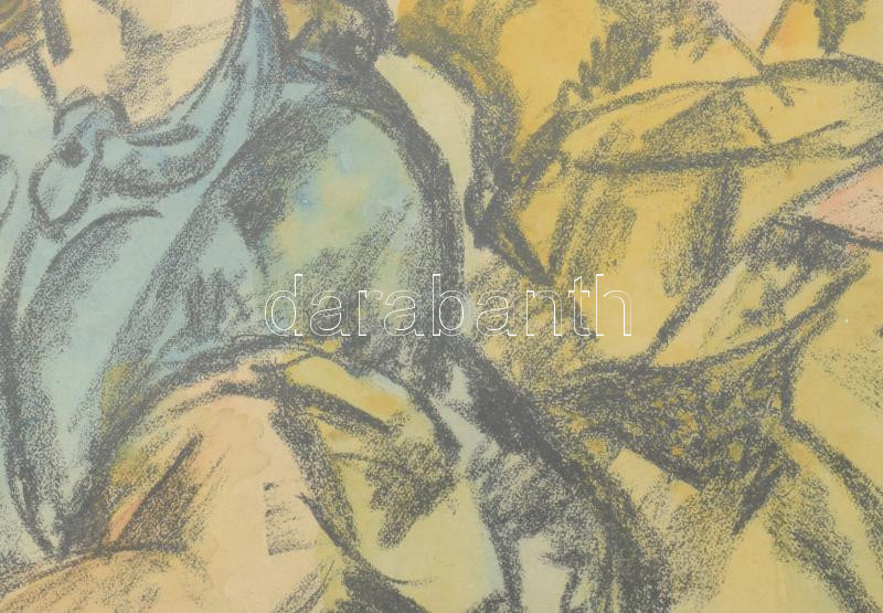 Istókovits Kálmán (1898-1990): II. világháborús rajz. Tempera, papír, jelezve jobbra lent: Istokovits. Paszpartuban. 36,5x27,5 cm