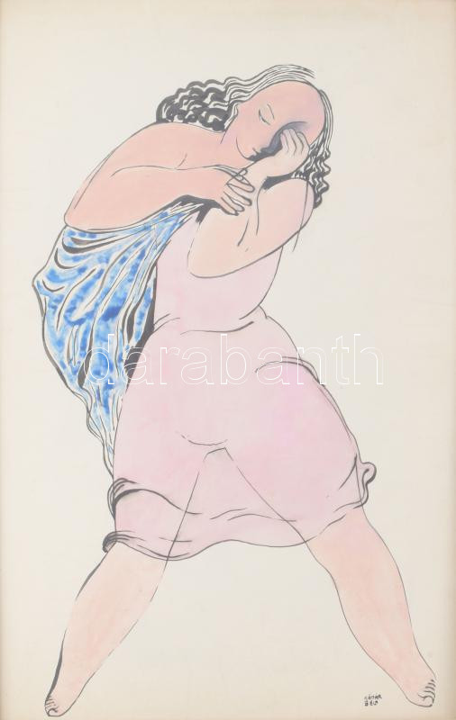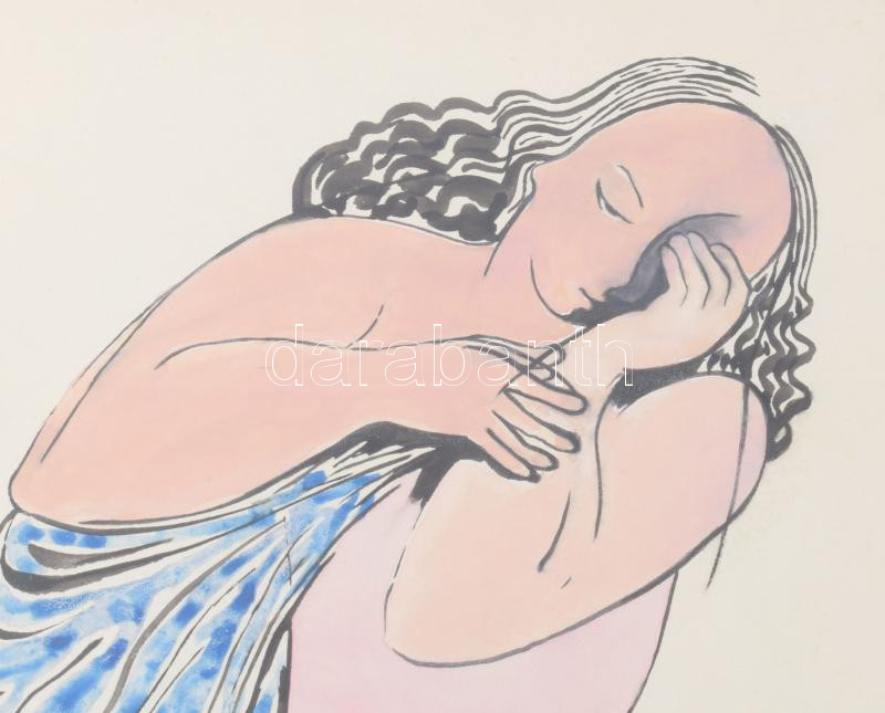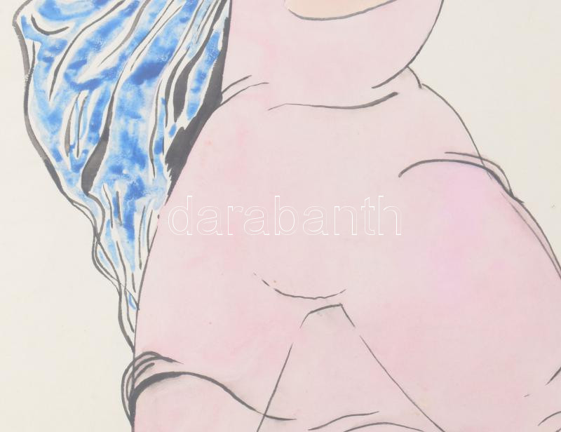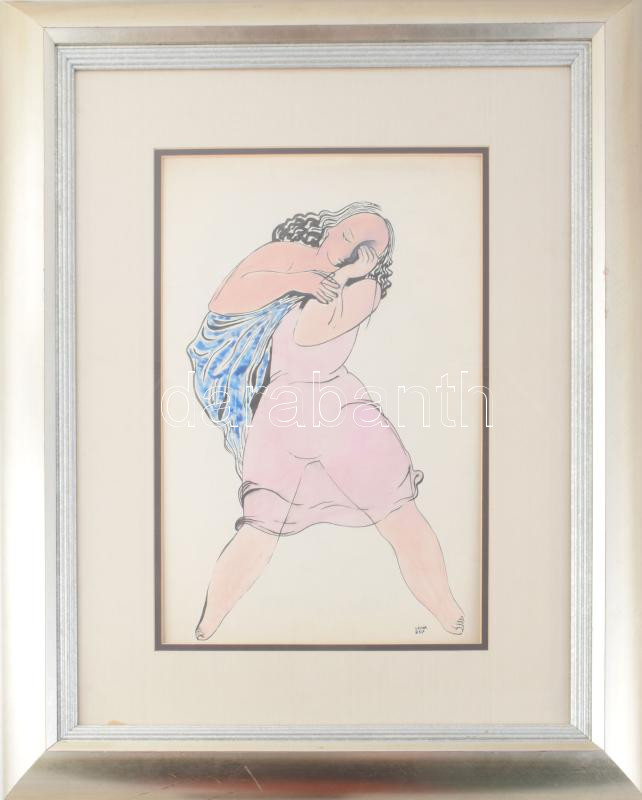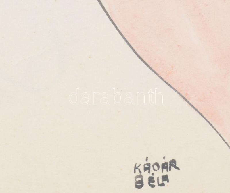 Kádár Béla (1877-1956): Rózsaszín ruhás hölgy. Akvarell, tus, papír. Jelzett. Kartonra kasírozva. A műtárgyat azonosította Rum Attila művészettörténész. Üvegezett fakeretben. / watercolour and ink on paper, signed, framed,