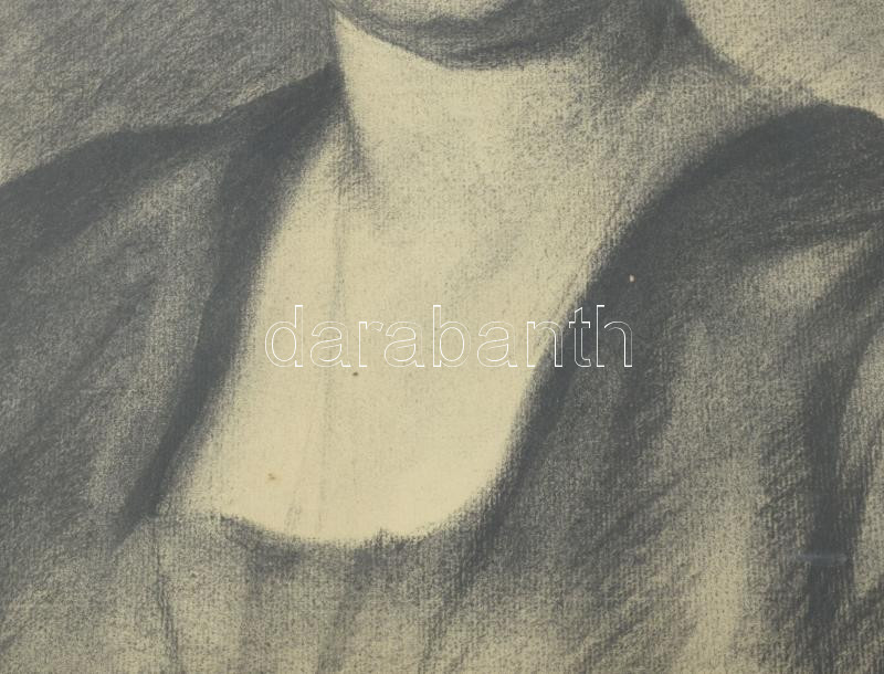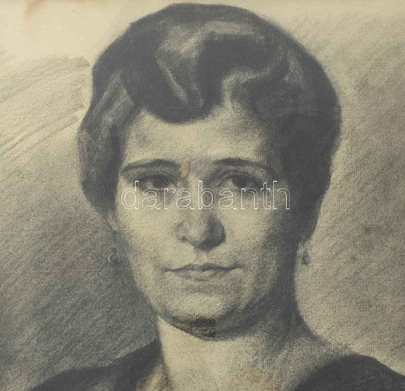 Tipary Dezső (1887-1967): Einczinger Ferencné, Einczinger Ferenc (1879-1950) festőművész feleségének portréja, 1923. Szén, papír, jelezve jobbra lent. Apró sérülésekkel. Üvegezett, dekoratív, kissé sérült fakeretben, 48×38 cm